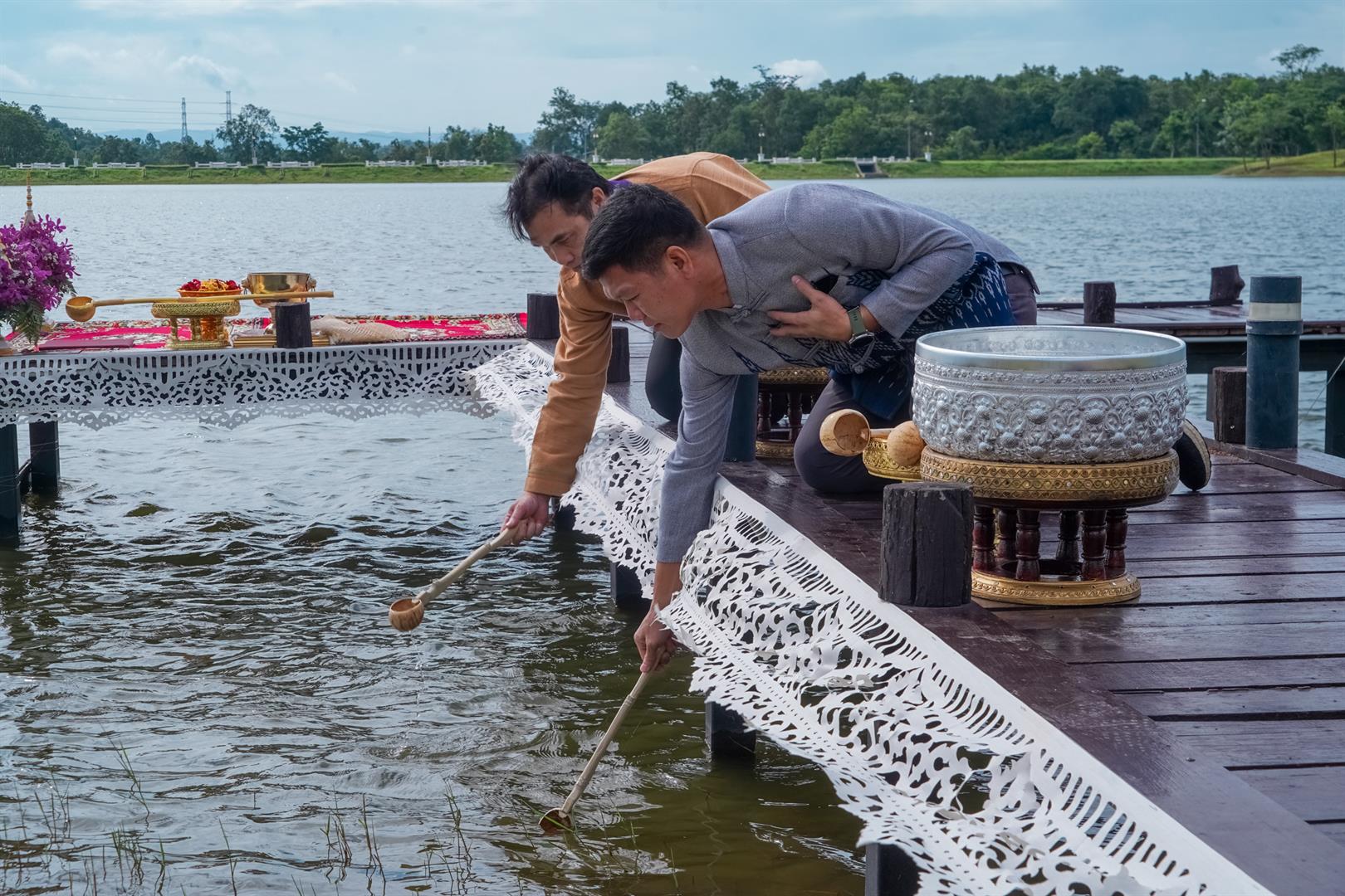 The annual procession of the Phra That Chom Thong cloth was an activity that adheres to good traditions, combined with the ancient beliefs of Buddhists who believe that bringing cloth to cover around the pagoda, like offering a set of robes to the Lord Buddha, which considered the highest auspiciousness. The water used in this water scooping ceremony was collected from 8 important water sources, including: “the Royal Reservoir water” from the water reservoir inside the University of Phayao, which is an important water source that supports students and staff of the university. It was also reflects the awareness of sustainable water resources management (SDG 6: Access to clean water and sanitation) in terms of valuing and prioritizing local water sources, and the University of Phayao promoted learning and continues good values to create a strong and sustainable society.