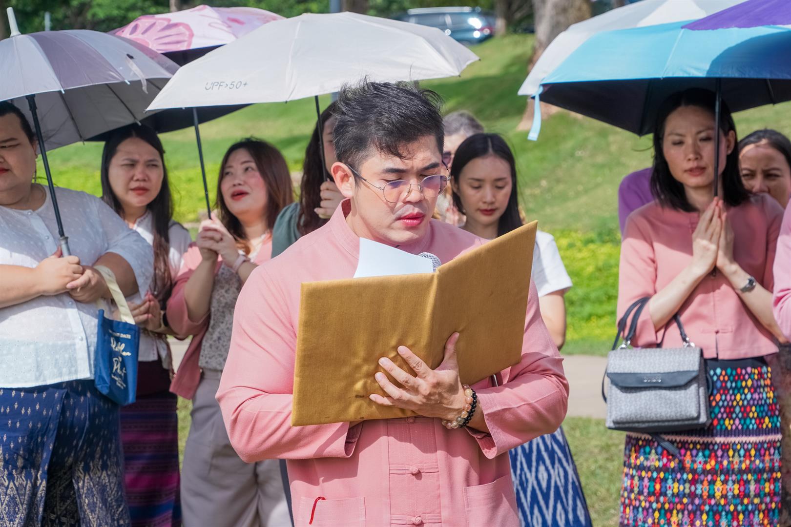 School of Education participated in the fetching water ceremony and bathed Phra That Chom Thong