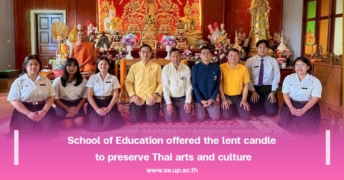 On July 21, 2025, led by Associate Professor Dr. Ruksit Suttipong, the Dean of the School of Education, along with Assistant Professor Dr. Sunthon Khlai-Um, the Associate Dean for Administration and Student Quality Development, Assistant Professor Dr. Natthawut Subphaso, the Assistant Dean, and the School of Education representative, offered the lent candle and other things to the monks on the occasion of Buddhist Lent at Wat Ban So and Wat Mo Kaeng Thong, Phayao, to continue the Buddhist tradition, preserve valuable Thai customs, and promote morality and ethics among the staff and students of the School of Education, corresponded with the School of Education’s Strategic Plan, Strategy 4: Promoting the preservation of arts, culture, and Thai identity to foster local pride. In addition, the activity supports the Sustainable Development Goals (SDGs), including SDG 4: Quality Education, SDG 11: Sustainable Cities and Communities, and SDG 17: Partnerships for the Goals.