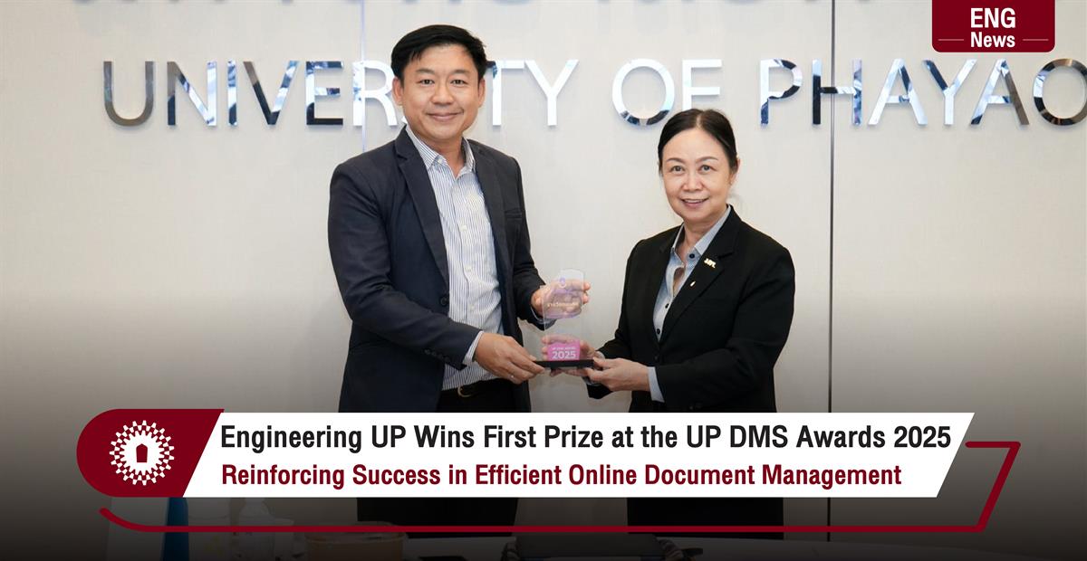 Organized by the General Administration Division, University of Phayao, the UP DMS Awards aim to recognize departments that demonstrate outstanding achievements in implementing the University of Phayao Document Management System (UP DMS) to enhance efficiency in document management. The School of Engineering has excelled in reducing operational procedures, minimizing paper usage, and improving the speed and convenience of document transmission both within and beyond the School.