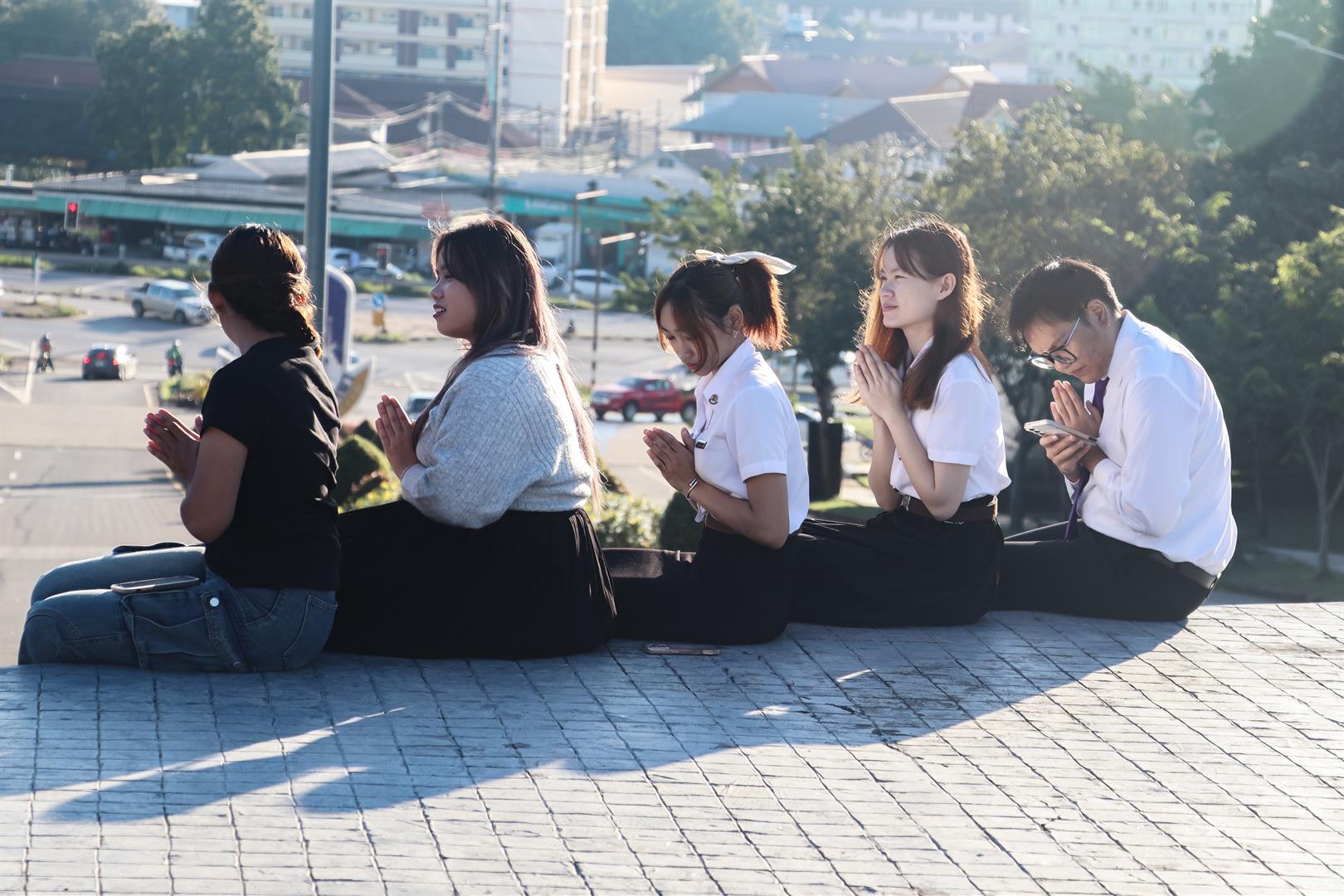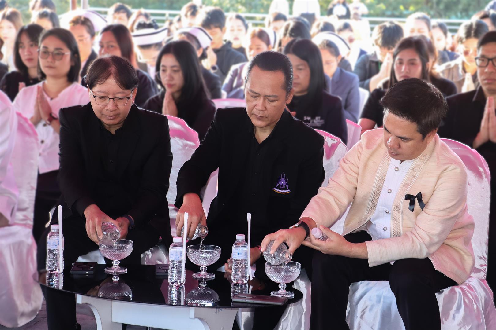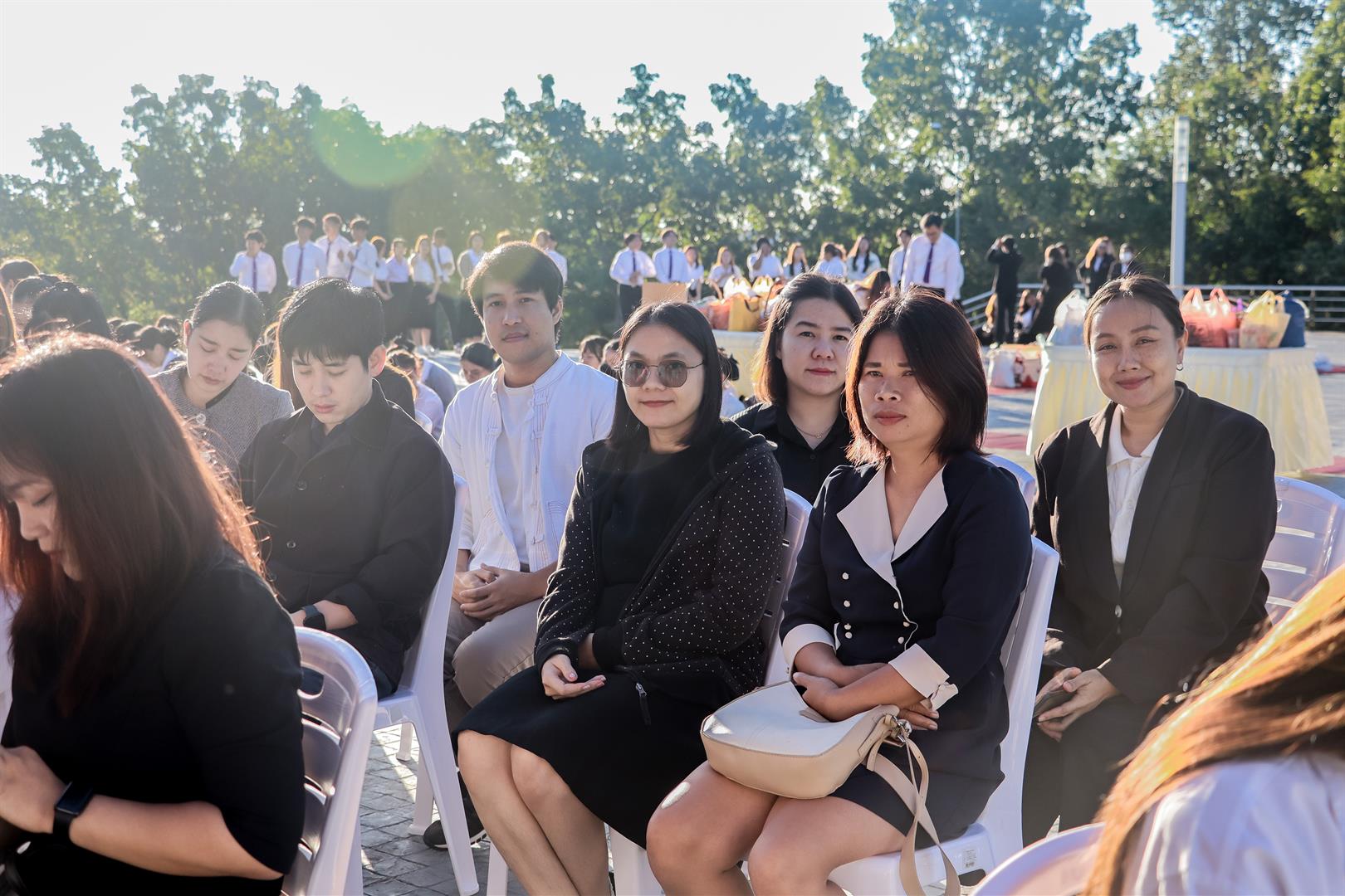 The ceremony was presided over by Dr. Wuttichai Chairinrum, Vice President for Student Quality. University executives, deans, assistant presidents, division heads, staff, students, alumni, and local community members joined together in offering dry food to eight monks from Wisuddhimagga Meditation Center and Ban So Temple, expressing deep gratitude and remembrance for the royal benevolence.