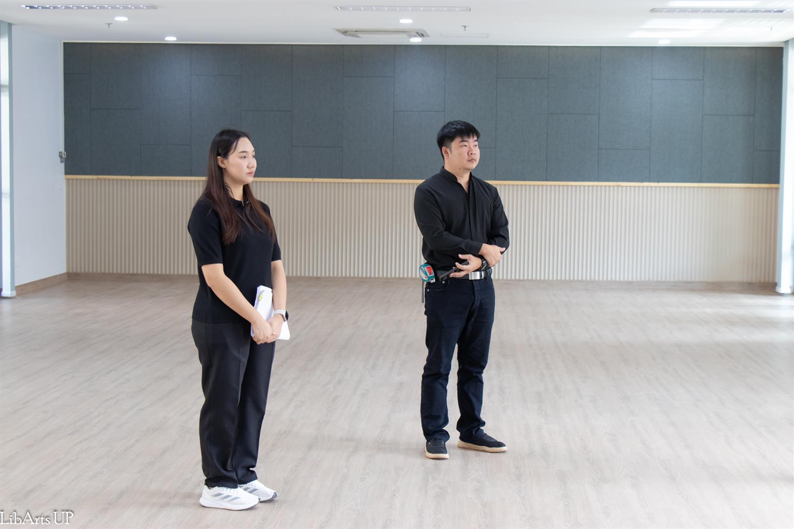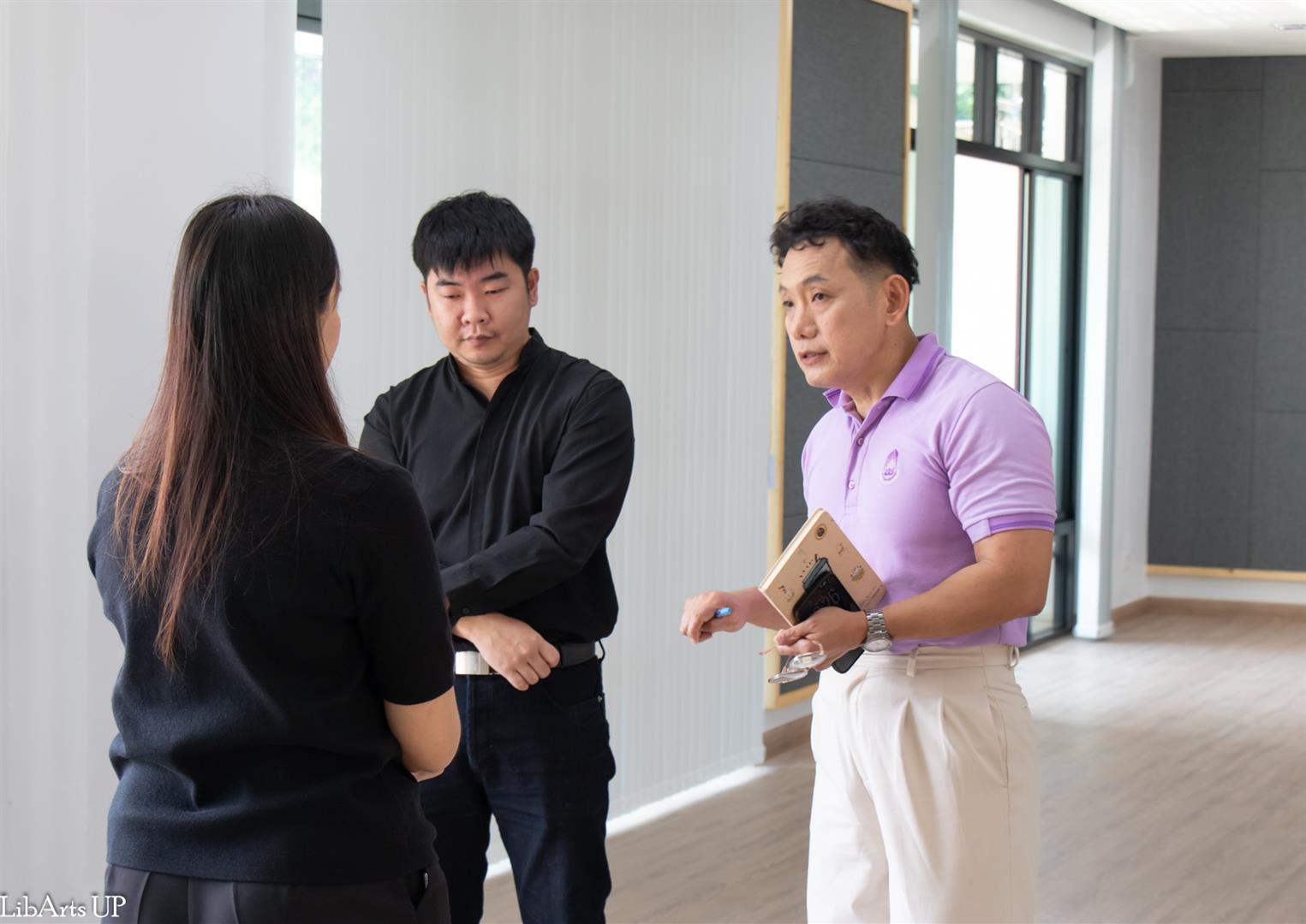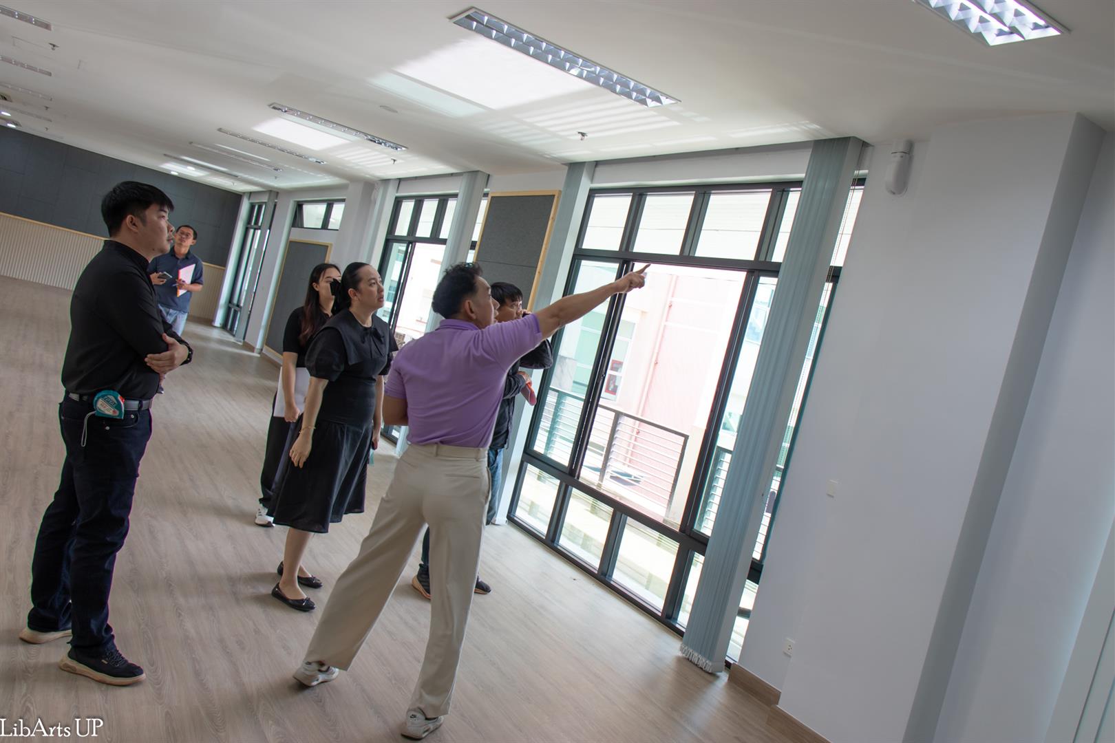 The Inspection Committee of the School of Liberal Arts, led by Dr. Ittiphol Buayoi (Assistant Dean and Committee Chair) and Dr. Chanapa Daungfai (Associate Dean for Special Affairs), together with the committee members, site supervisors, and the contractor, conducted a formal inspection of the renovated 120-Seat Language Testing Center (CE12303-CE12305), School of Liberal Arts, University of Phayao.