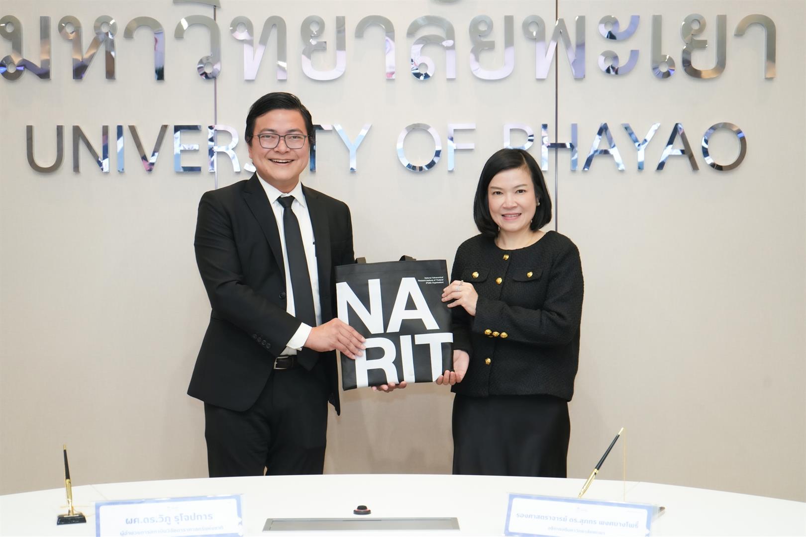 The Memorandum of Understanding (MOU) aims to promote and strengthen academic cooperation, as well as facilitate the exchange of knowledge and expertise in the fields of astronomy, science, technology, and related areas. During the signing ceremony, Associate Professor Dr. Supakorn Phongbangpho, on behalf of the University of Phayao, delivered a welcome address and co-signed the agreement. Dr. Wiphu Rujopakarn, Director of the National Astronomical Research Institute of Thailand (NARIT), represented NARIT and signed the MOU.