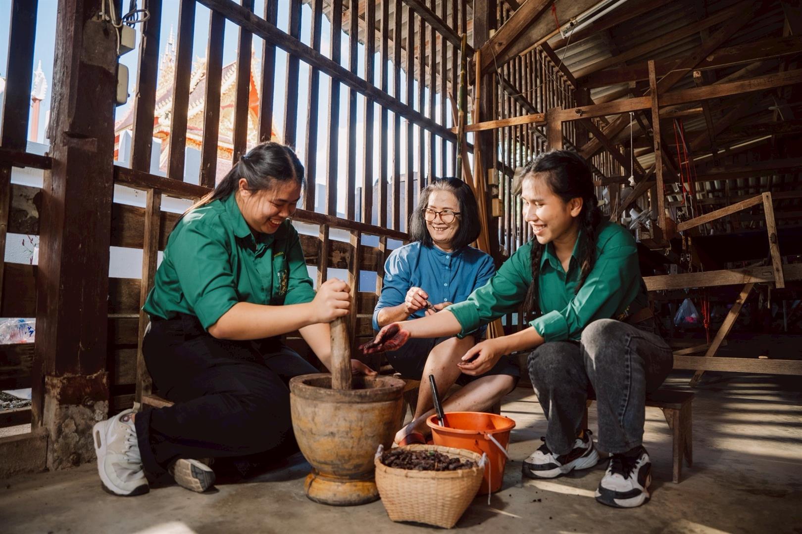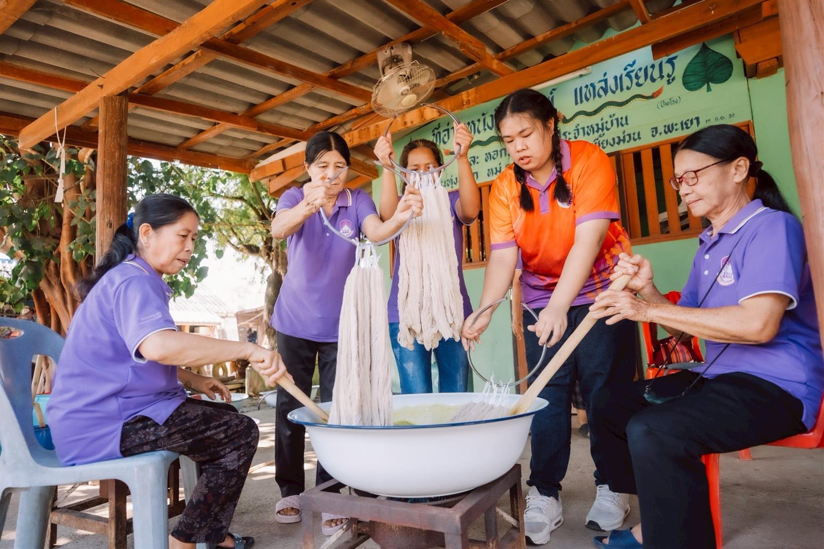 The transformation began in 2012 in Tung Mok Village, Chiang Kham District, under the Science and Technology Community Hub Village Project led by the University of Phayao in collaboration with the Ministry of Science and Technology. The project worked with the Tai Lue weaving community to improve traditional natural dyeing practices using locally available plants.