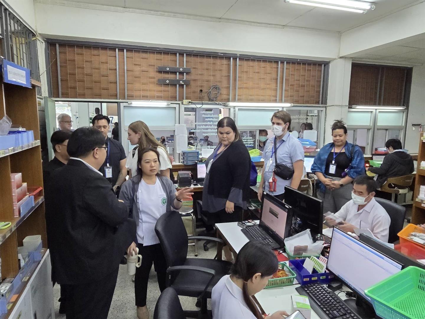 On this occasion, Dr. Surawat KulsriDr. Solas Limpkanakorn, and the executive management team of Dok Khamtai Hospital warmly welcomed the delegation and presented the role of primary care pharmacists and their integration within the district health system of Dok Khamtai. The visit included discussions on primary care pharmacy services at the hospital, collaboration between the hospital and its network of Subdistrict Health Promoting Hospitals, a site visit to Dok Khamtai Subdistrict Health Promoting Hospital, and home visits to patients.