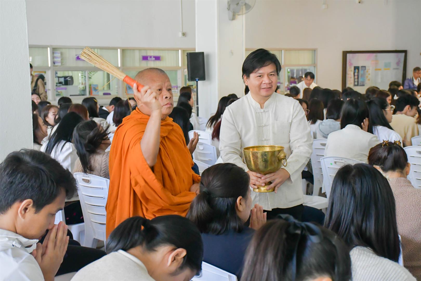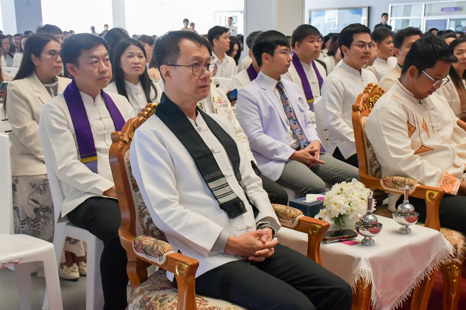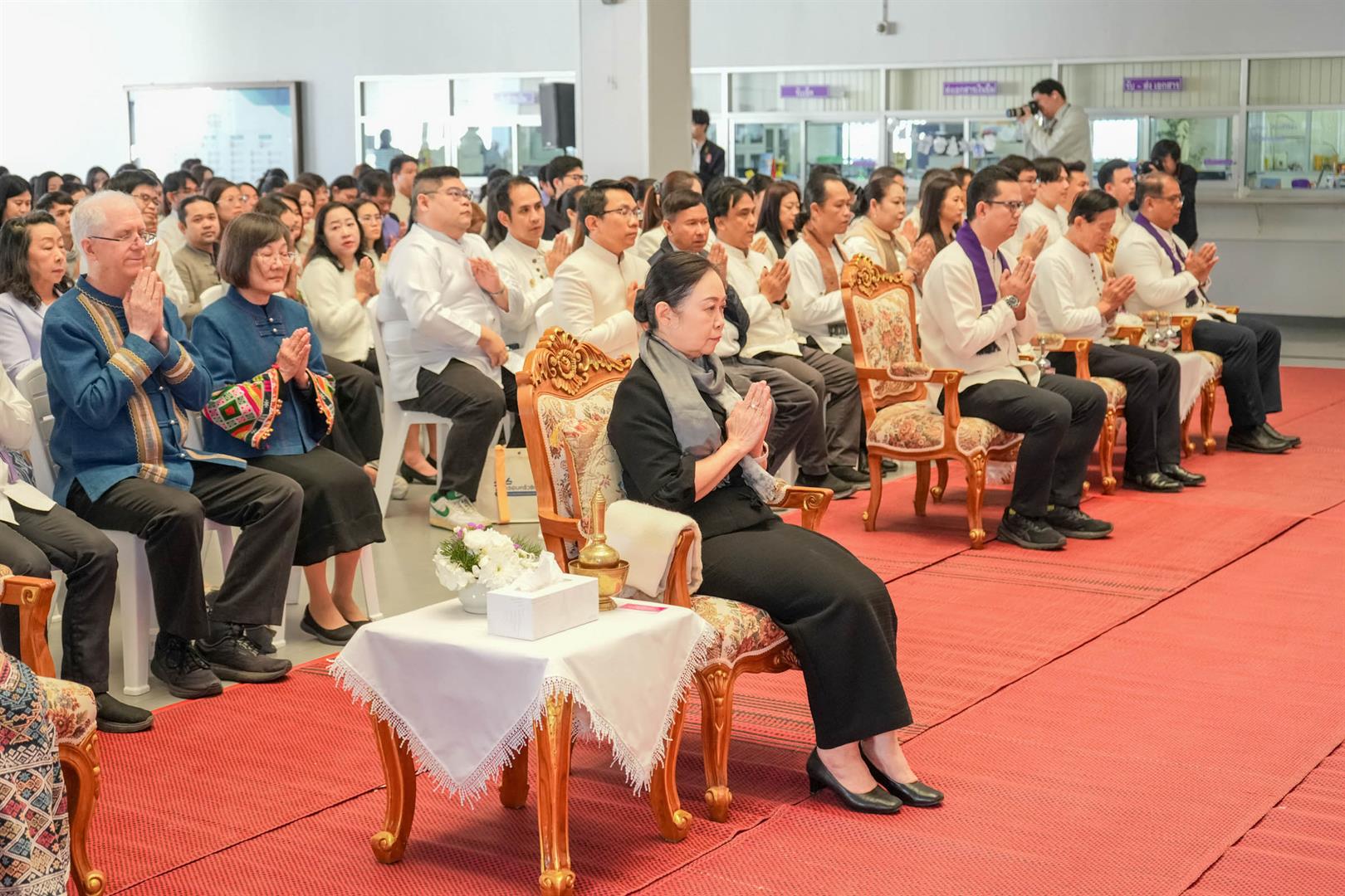 On January 9, 2026, Associate Professor Dr. Ruksit Suttipong, the Dean of the School of Education, assigned Assistant Professor Dr. Sunthon Khlai-Um, the Associate Dean for Administration and Student Quality Development, to participate in the New Year Merit-Making Ceremony and celebrate the 16th Anniversary of the University of Phayao. It was honored by Associate Professor Dr. Supakorn Pongbangpho, President of the University of Phayao, was the president in the ceremony to bring auspiciousness and provide moral encouragement to all personnel, while also serving to preserve and promote Lanna cultural traditions. On this occasion, a merit-making ceremony was conducted and dedicated as a royal tribute to Her Majesty Queen Sirikit, the Queen Mother, following her passing, to express deep mourning and to honor her immeasurable grace and benevolence. This activity was aligned with the Sustainable Development Goals, particularly SDG 3: Good Health and Well-being, and SDG 11: Sustainable Cities and Communities.