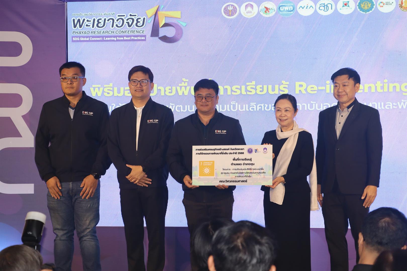 School of Engineering, University of Phayao, extends its sincere congratulations on the achievement of the research project entitled “Development of Technologies and Innovations for Future Foods to Enhance a Sustainable Economy in Mae Puem Community, Phayao Province.” The project is led by Assistant Professor Dr. Sutham Arun, Project Director, together with a team of School members and researchers from the School of Engineering. The project was honored with the “1 School, 1 SDG” Outstanding Performance Award for the year 2025 at the 15th Phayao Research National Conference, held under the theme “SDGSS Global Connect: Learning from Best Practices.”