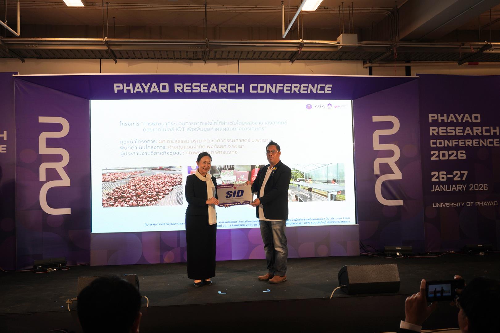 The award was presented at the 15th National Academic Conference “Phayao Research Conference”, held under the theme “SDG Global Connect: Learning from Best Practices,” in recognition of the project’s research and development outcomes that align with the Sustainable Development Goals (SDGs). The conference took place on Tuesday, 27 January 2026, at Room UB002, the 99th Anniversary Building of Phra Ubali Khunupamachan (Puang Thammappañño), University of Phayao, and was organized by the Division of Research Administration.