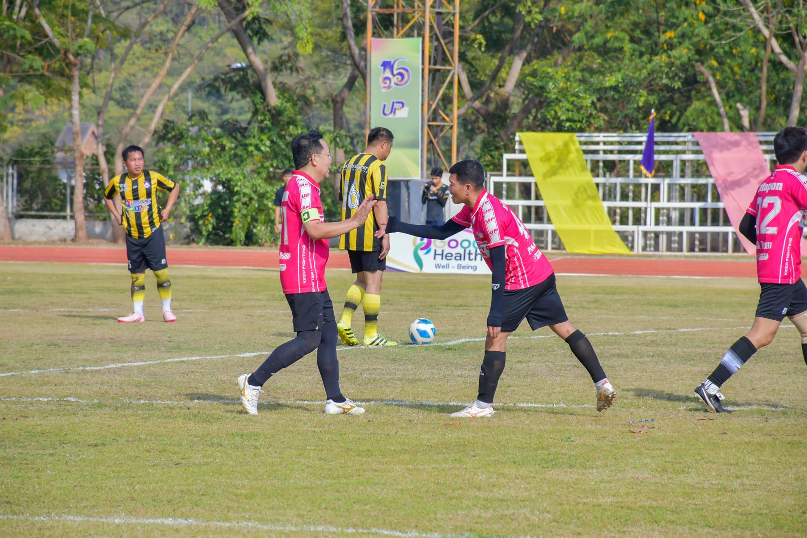 The annual University personnel sports competition is held regularly each year, with participants divided into four teams represented by colors: blue, yellow, green, and pink. The School of Education was assigned to the pink team, together with the School of Political and Social Sciences, the School of Liberal Arts, the School of Agriculture and Natural Resources, the University of Phayao Demonstration School, the Institute of Learning Innovation, the Human Resources Division, and the Research Administration Division. Competitions were conducted across eight sports disciplines: football, badminton, volleyball, pétanque, athletics, chairball, basketball, and e-sports. The competitions have been ongoing since 15 December 2025. This activity is aligned with the Sustainable Development Goal, particularly SDG 3: Good Health and Well-being.