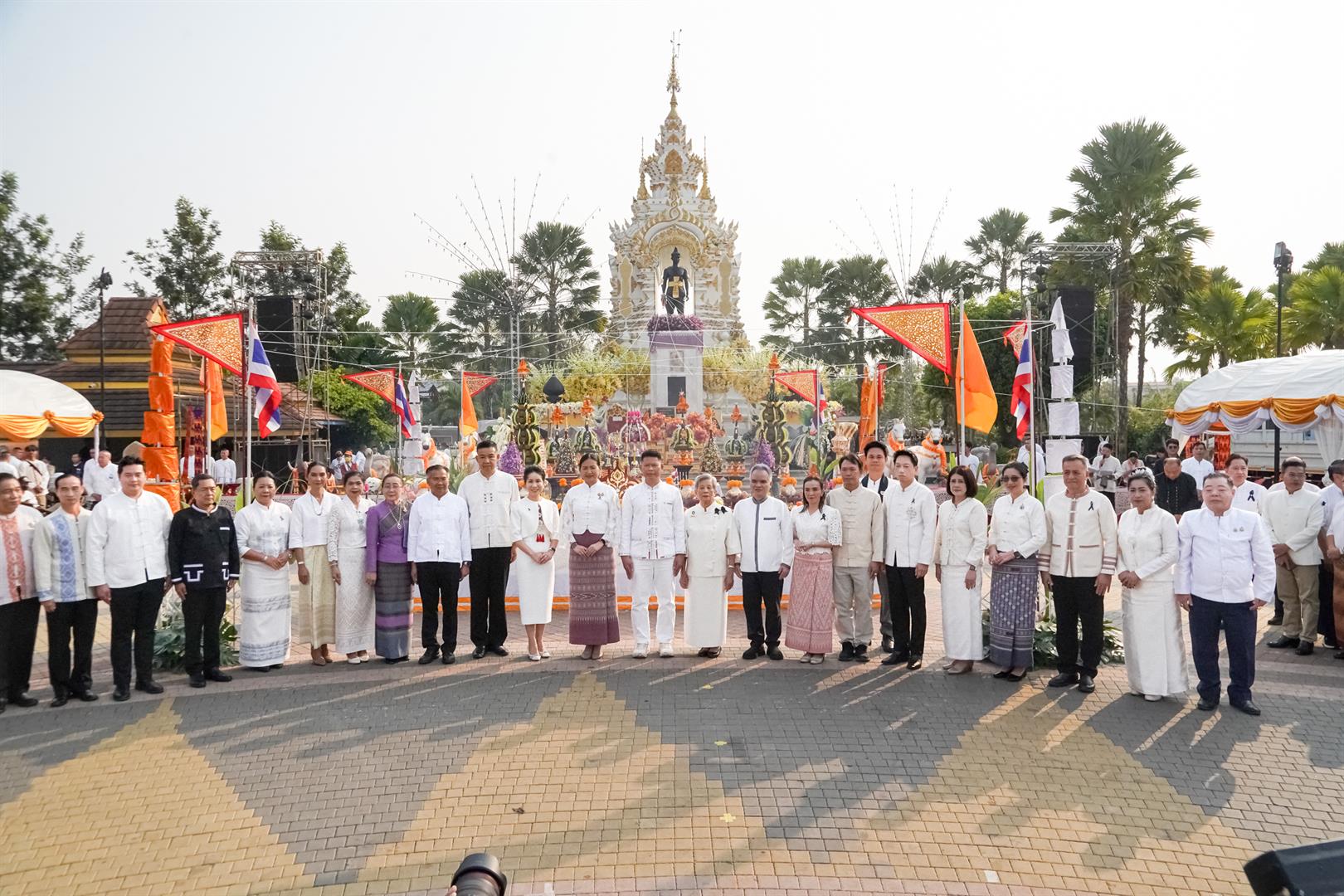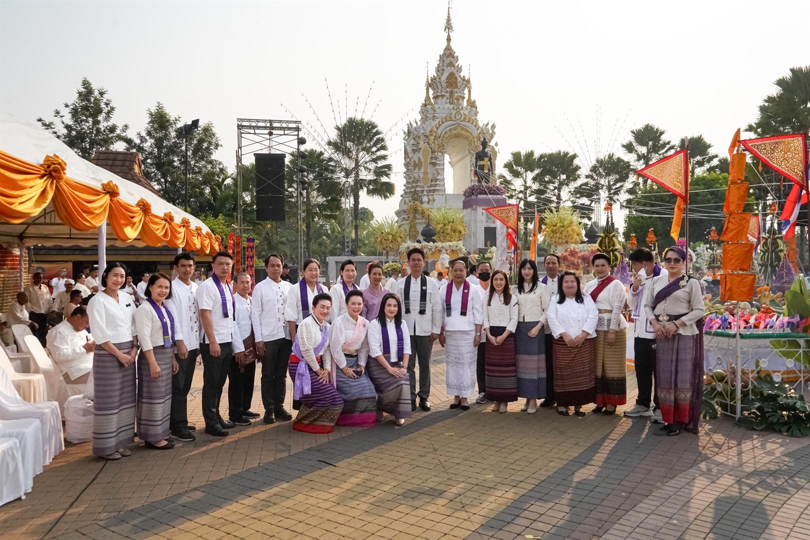 The ceremony was presided over by Ms. Oraphapa Lohwira, Governor of Phayao Province, who led the traditional Four Guardian Deities Invocation ritual as part of the worship ceremony. The event was attended by provincial administrators, government officials, military and police personnel, representatives from the private sector, and members of the public. The University of Phayao also participated in the ceremonial tribute and joined more than 2,000 performers in a synchronized Fon Leb (Lanna fingernail dance) performance to the traditional song “Pao Kai Bai,” reflecting the rich artistic heritage of Northern Thailand.