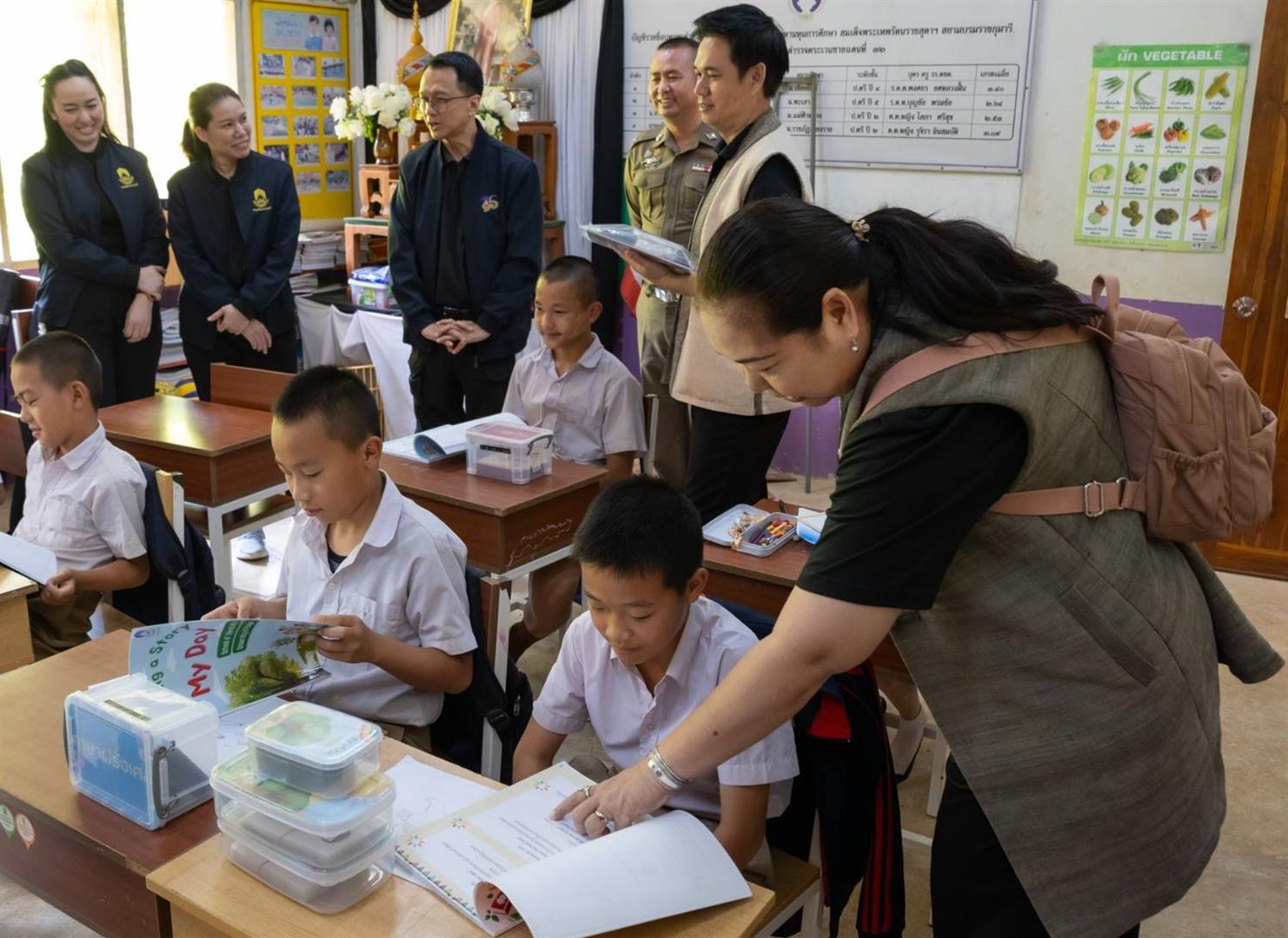 On this occasion, the School of Liberal Arts, led by Assistant Professor Dr. Chittima Kaweera, Dean of the School of Liberal Arts, together with Dr. Chanapa Duangfai, Associate Dean for Special Affairs, presented the progress report on the English language development project for primary school students. This initiative is based on research supported by the Research Administration Division, University of Phayao, and includes the development of learning materials aligned with the Sustainable Development Goals (SDGs). The project is conducted under a research framework on integrated linguistics-based language learning (Re-inventing University), as part of the Higher Education Excellence Development and Advanced Workforce Development Program, aiming to enhance educational opportunities and strengthen language learning capacities for youth in remote areas.