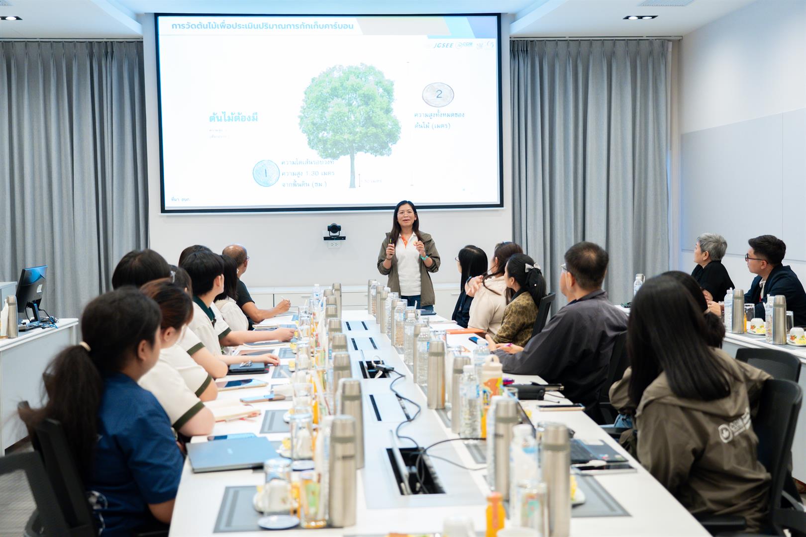On this occasion, Dr. Nittaya Chain from the Carbon and Greenhouse Gas Management Unit (CGM), King Mongkut’s University of Technology Thonburi, was honored as the guest speaker, delivering knowledge on carbon sequestration measurement in woody biomass.